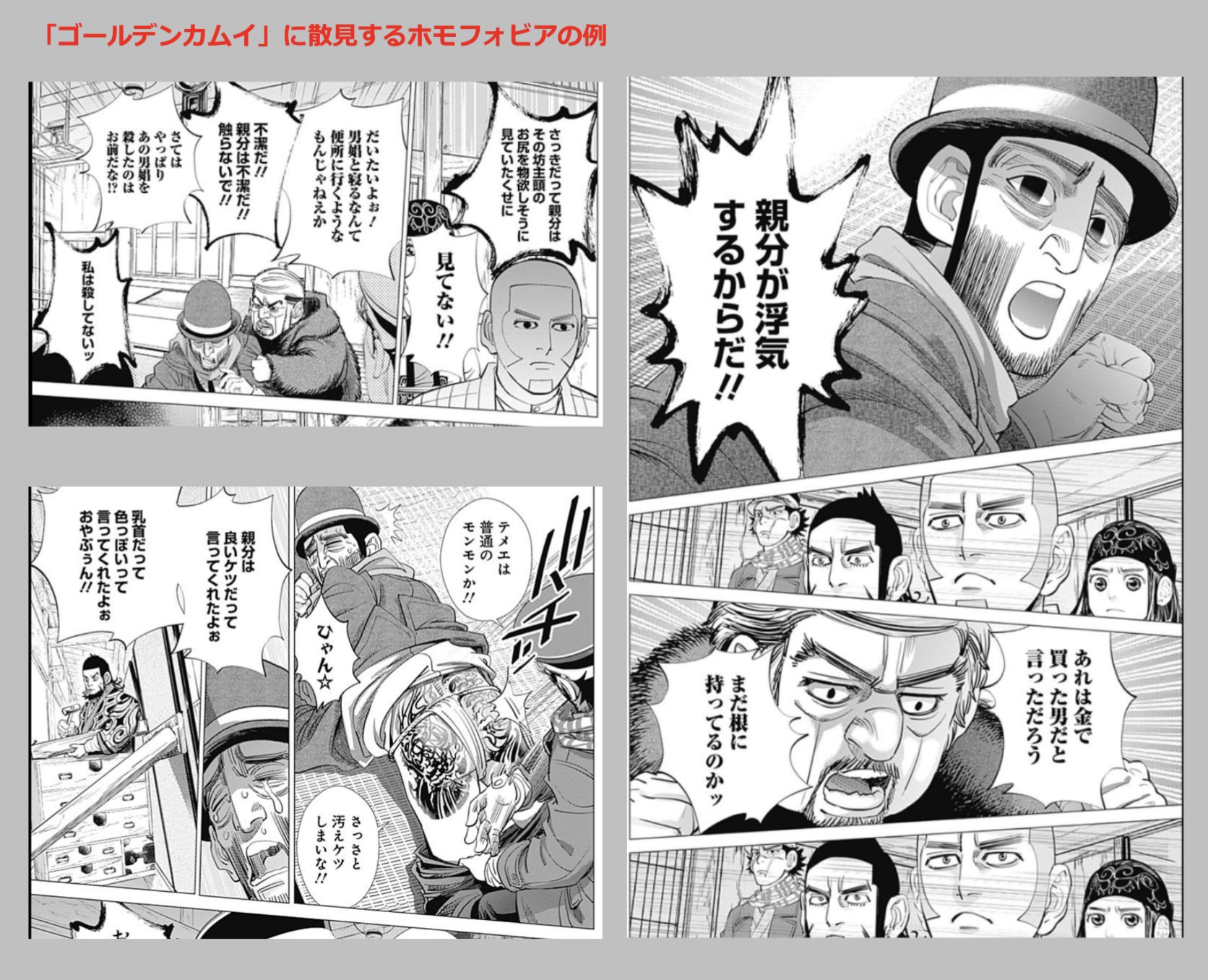 Yuki Matsuzaki 松崎悠希 Gt 漫画版の ゴールデンカムイ にはどんな差別的表現が登場するの たとえば のステレオタイプなゲイカップルは ゲイであること 自体が ジョーク として扱われる そして彼らがお互いへの愛情を見せる度 冷たい目で見る